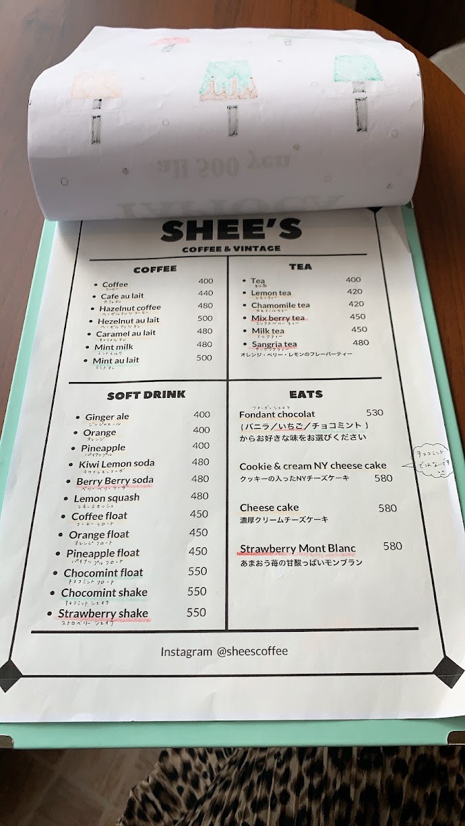 SHEE's coffee & vintage Menu